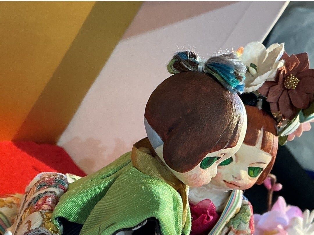 近年人とお揃いのドールのための着物や洋服をデザインしている。